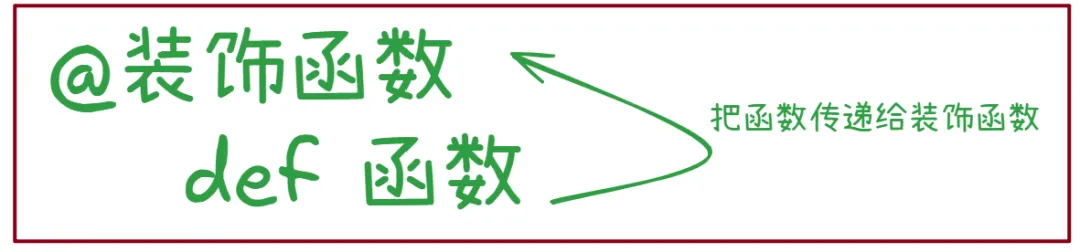 # 🔥 带参数的装饰器(三层函数)def outer(msg): # 第一层:接收参数执行返回装饰器! def middle(func): # 第二层:普通装饰器,接收原函数 def wrapper(): # 第三层:真正包装 print(f"--- {msg} ---") # 使用装饰器传的参数 func() # 执行原函数 return wrapper return middle# ------------------- 使用 -------------------@outer("我是装饰器传进来的参数!") # 理解为:outer()执行完毕返回函数middledef f1(): print("f1 执行了")f1()