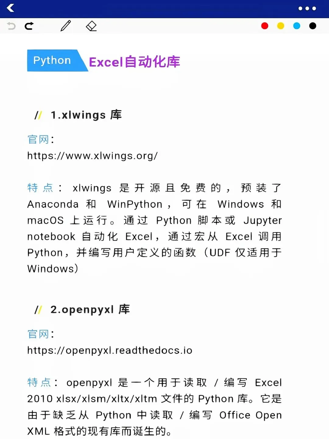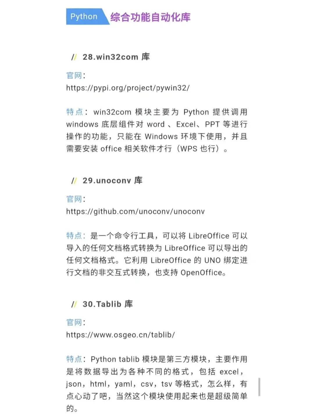 Python 自动化办公的核心,是选对库、用对方法!这份 36 个办公库合集,摒弃冷门库,只选职场高频用的:处理 Excel 的 pandas/openpyxl、操作 Word 的 python-docx、自动发邮件的 smtplib 等,每个库都讲清适用场景和核心代码,收藏起来,遇到问题直接查,真正提升办公效率!
