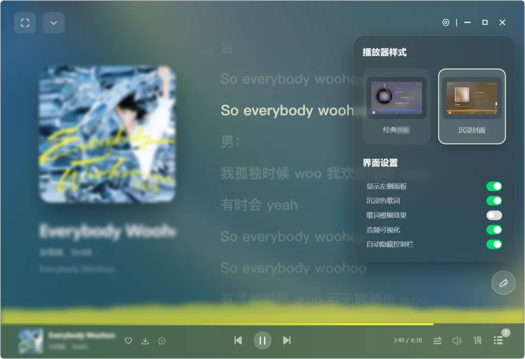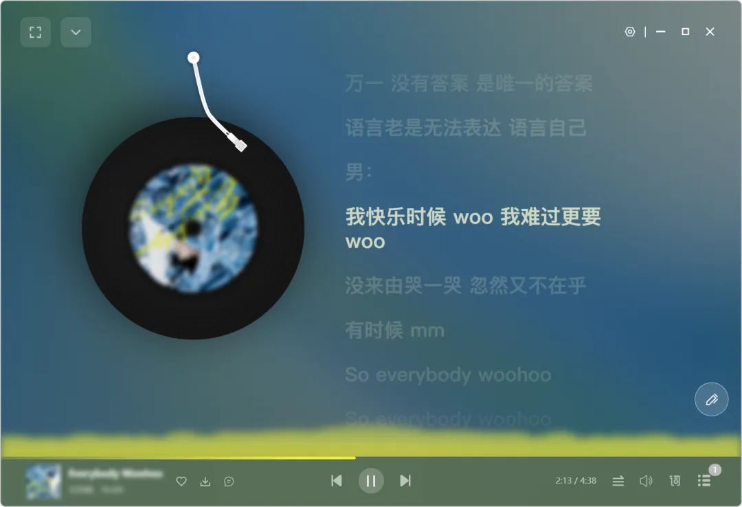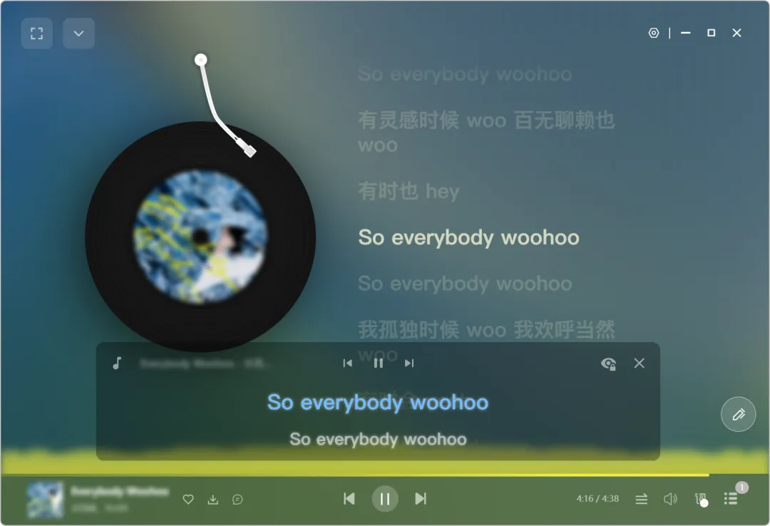 自带桌面歌词: