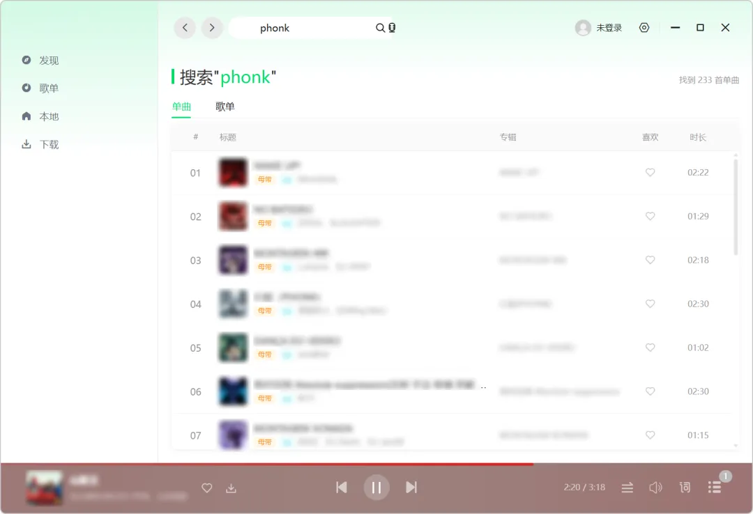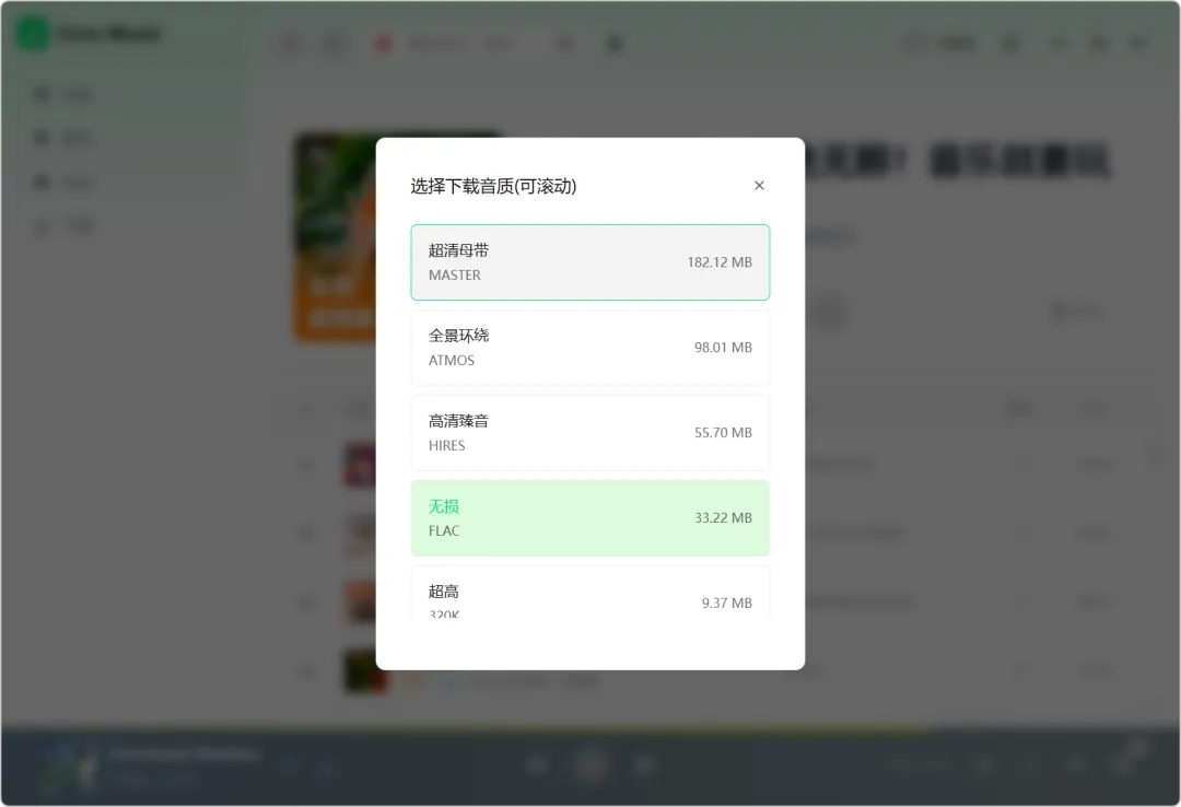 支持多种音质选择,点击,即可一键下载保存。