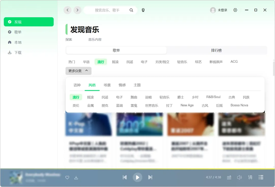 歌单广场,也涵盖了不同:风格、场景、主题。