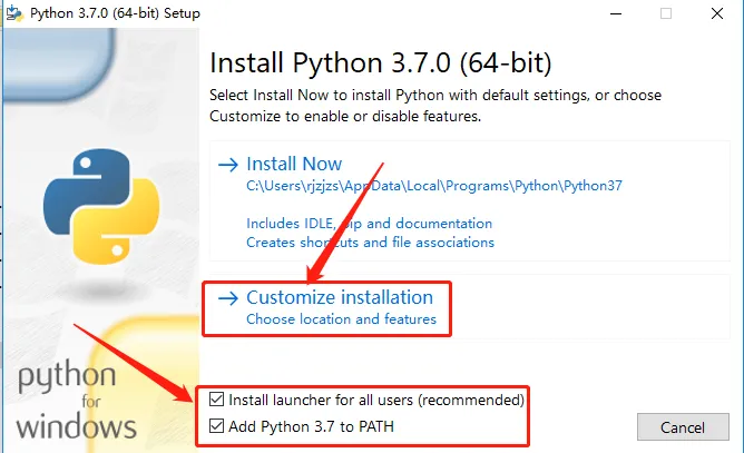 5.勾选下图所示的选项,点击【Customize installation】。