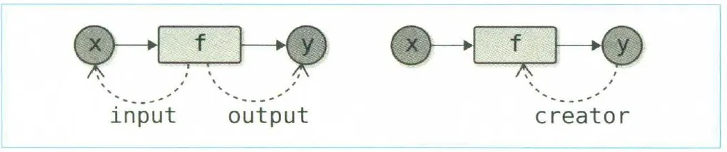 图7-2 函数与变量的双向关系在代码中,我们为Variable类添加一个creator属性,以及设置它的方法set_creator: