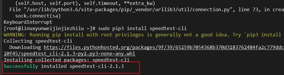 # 方法一:使用pip安装pip install speedtest-cli# 方法二:使用apt安装(Ubuntu/Debian)sudo apt install speedtest-cli