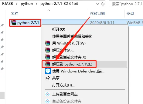 1.打开下载好的软件安装包,鼠标右击【python-2.7.1】压缩包,选择【解压到python-2.7.1】。
