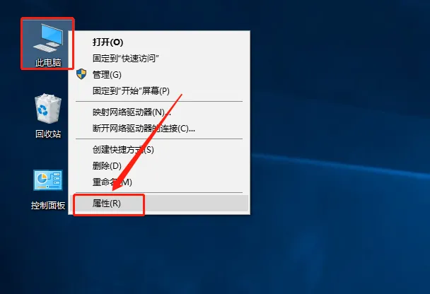 10.在桌面上选中【此电脑】,鼠标右击选择【属性】。