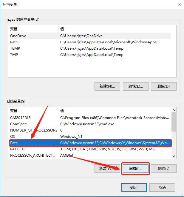 13.在【系统环境变量】中找到并选中【Path】变量,点击【编辑】。