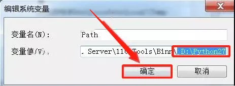 15.在输入框里面输入Python的安装位置【D:\Python27】(这里第四步安装在哪就填哪),点击【确定】。