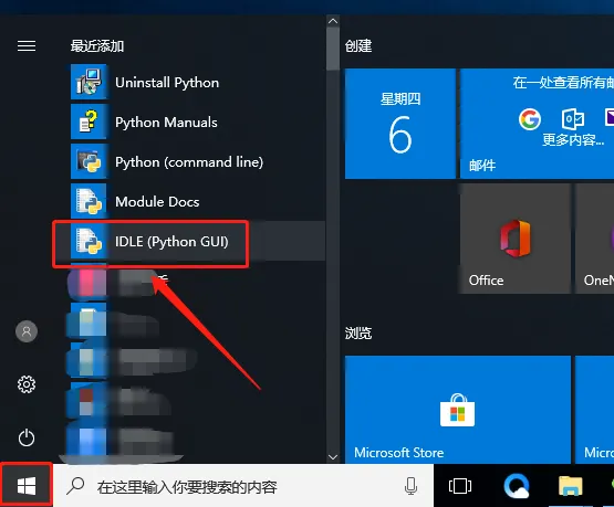 18.在开始菜单栏找到并打开【IDLE (Python GUI)】。