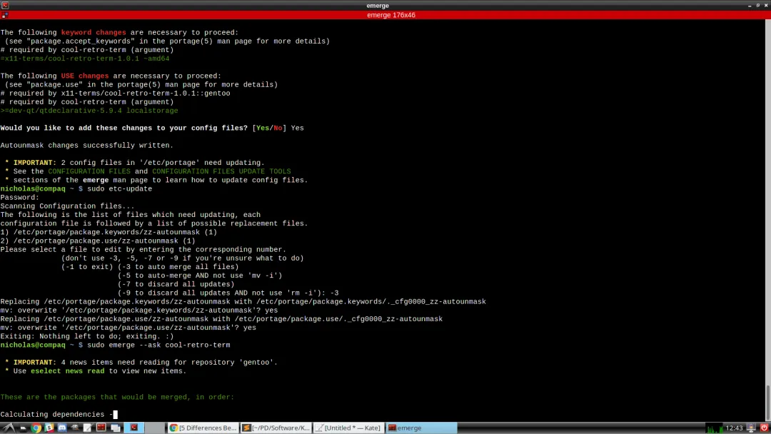 经典的emerge编译界面——看那滚动刷新的依赖列表,是不是瞬间血压升高?NixOS