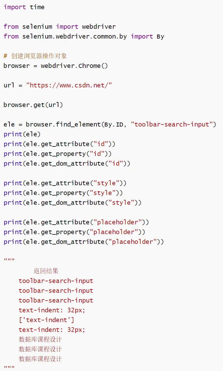 get_attribute():相当于「直接看 HTML 源码里写了啥」,比如`,它就取源码里id/style`的字面值。