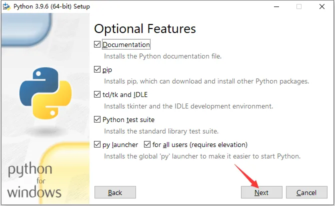 (2)单击“Customize installation”按钮,进行自定义安装,在弹出的安装选项对话框中采用默认设置,如图5所示。