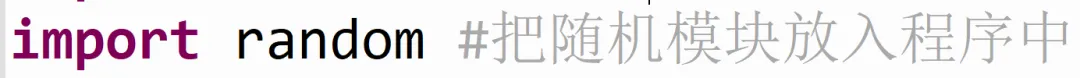 那就要把随机模块也邀请进我们的程序,随机的英文是“random”,所以,导入随机模块就是:import random