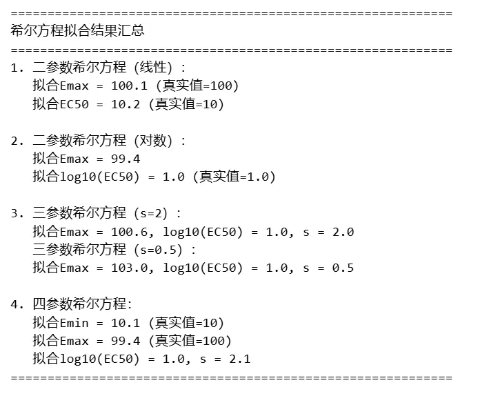 print(f" 拟合Emax = {Emax_4fit:.1f} (真实值={true_Emax})")