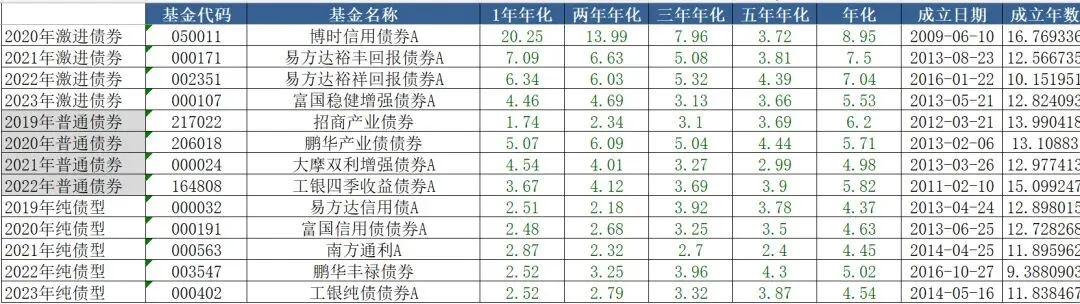 债基那边更稳,成立以来年化普遍在4.5%-8.9%之间,十几年稳稳跑赢理财,主打一个稳打稳扎。