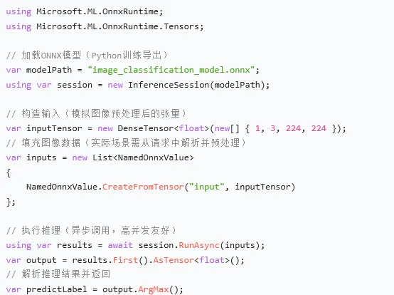 核心代码示例(.NET 加载 ONNX 模型):