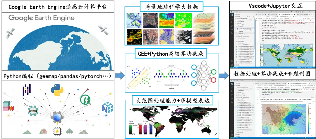 | GEE(Python)环境搭建、基本原理、平台功能介绍 | GEE(Python)在SCI论文中的科学前沿应用; GEE(Python)本地化部署与环境搭建; GEE(Python)海量账号注册与登录技巧 GEE(Python)快捷键使用技巧综合介绍; GEE(Python)快速使用代码模块技巧介绍;