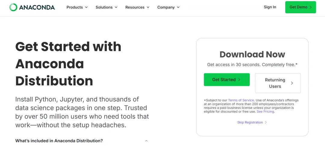 - 打开浏览器,搜索"Anaconda下载",进入官网