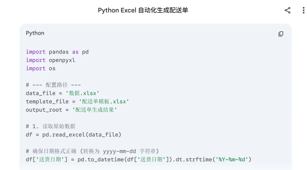 把这个学员的需求描述给AI,它会生成一段Python代码,大致逻辑是: