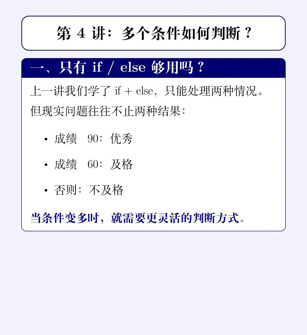 💡 程序会从上往下判断,只执行第一个满足条件的分支。