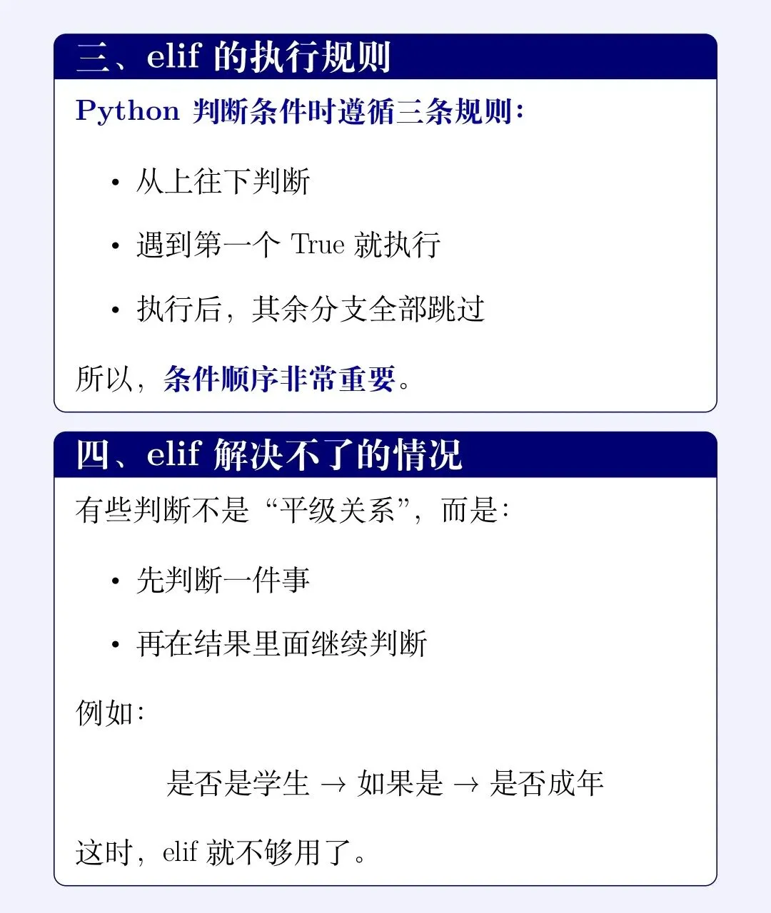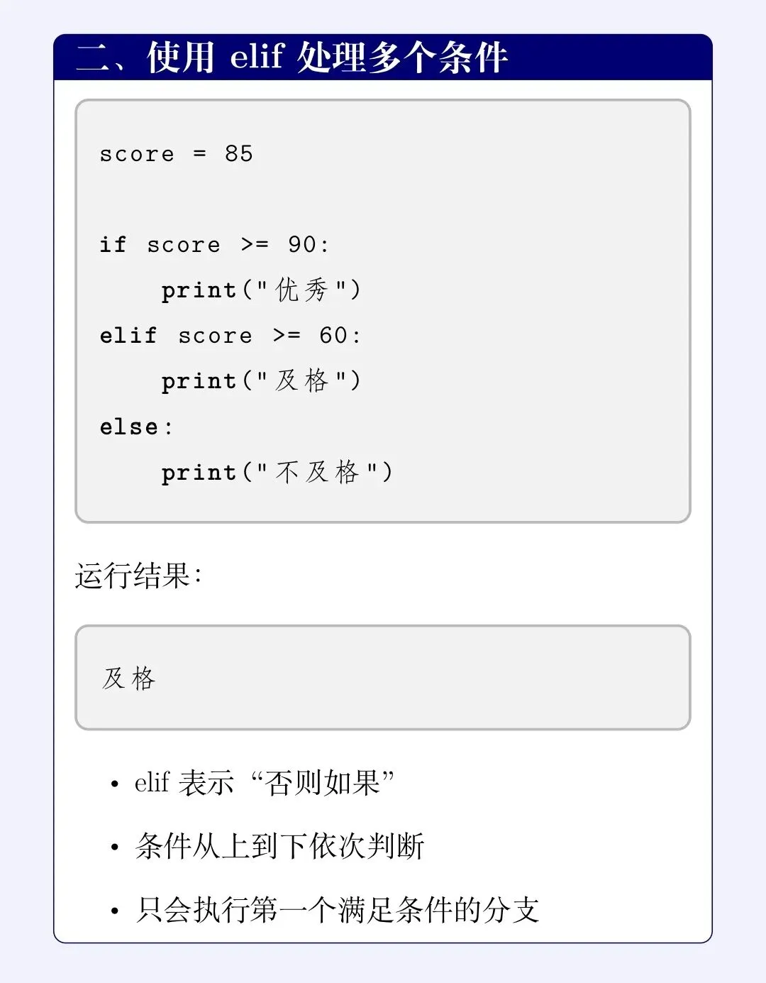 三、elif 的三条执行规则(非常重要)🚗