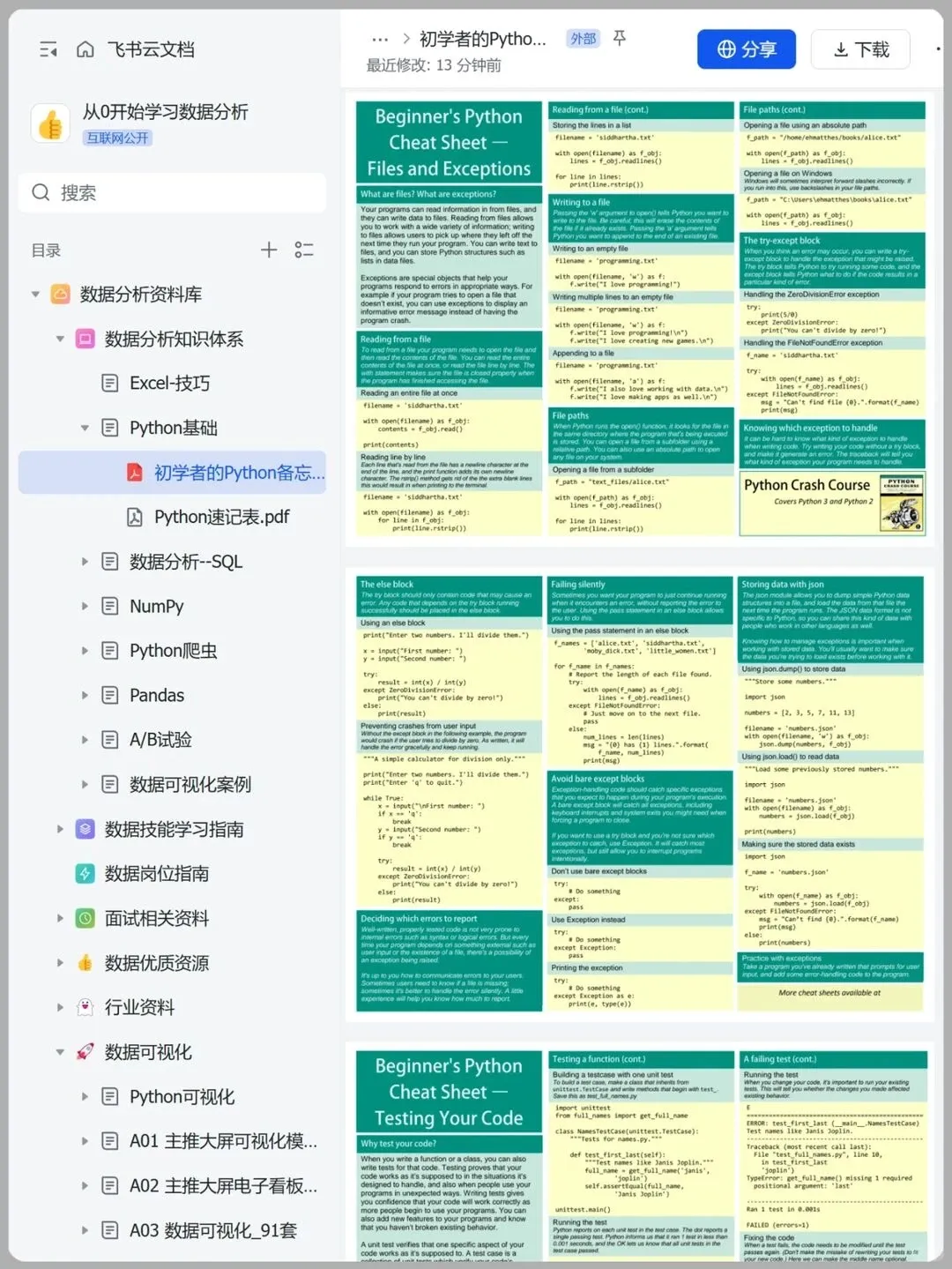 用一图彻底掌握Python!中文版Python速查表😭