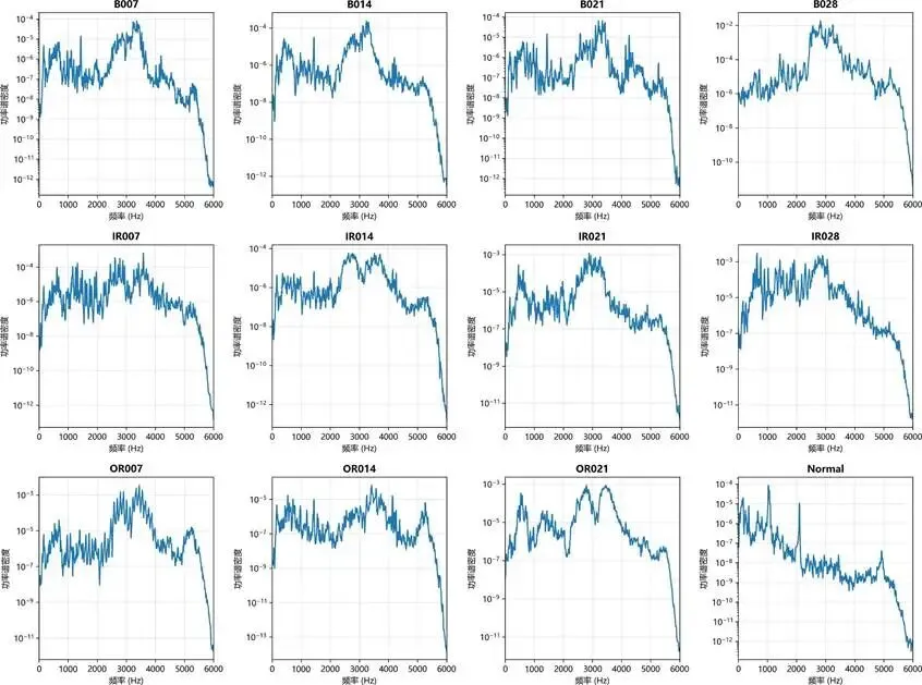 图:源域各故障类型功率谱密度分析