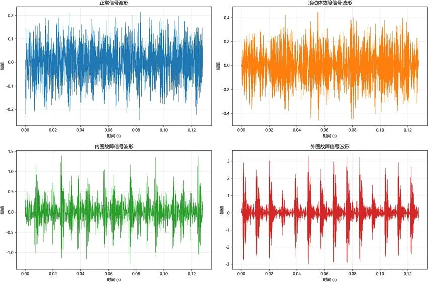 图:源域各故障类型代表性信号波形时域特征分析