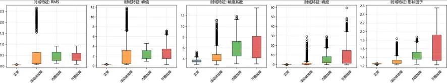关键时域特征分布箱线图: