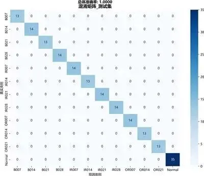混淆矩阵显示,各故障类别均被准确识别,无明显误判: