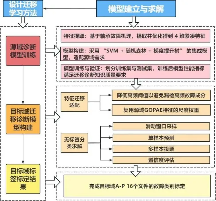 整个建模过程遵循“数据分析与特征提取 → 源域模型构建 → 跨域迁移诊断 → 模型可解释性分析”的逻辑链条,思路流程如图: