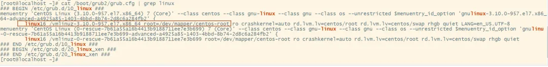 cat /boot/grub2/grub.cfg | grep linux