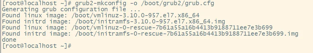 grub2-mkconfig -o /boot/grub2/grub.cfg