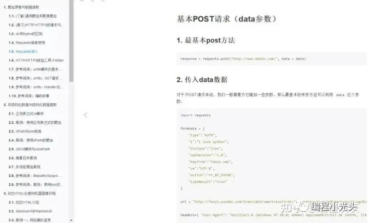 这份资料非常全面,从 Python 基础、到 web 开发、数据分析、机器学习、深度学习、金融量化统统都有,该手册是 HTML 版本,左侧是目录,可以点击,右侧是对目录知识点的讲解,适合 python 学习者,对某些知识点不熟悉的话,将页面保存到浏览器书签,可以快速在没网的情况下查找知识点,总计有 200 多页!