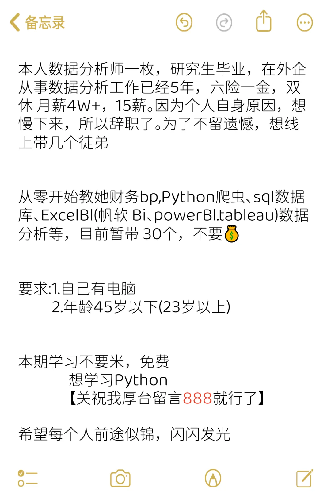 看完是不是觉得Python也没那么难?赶紧收藏这份“邪修宝典”,偷偷修炼,然后惊艳所有人!本人有意带几个人学习哦