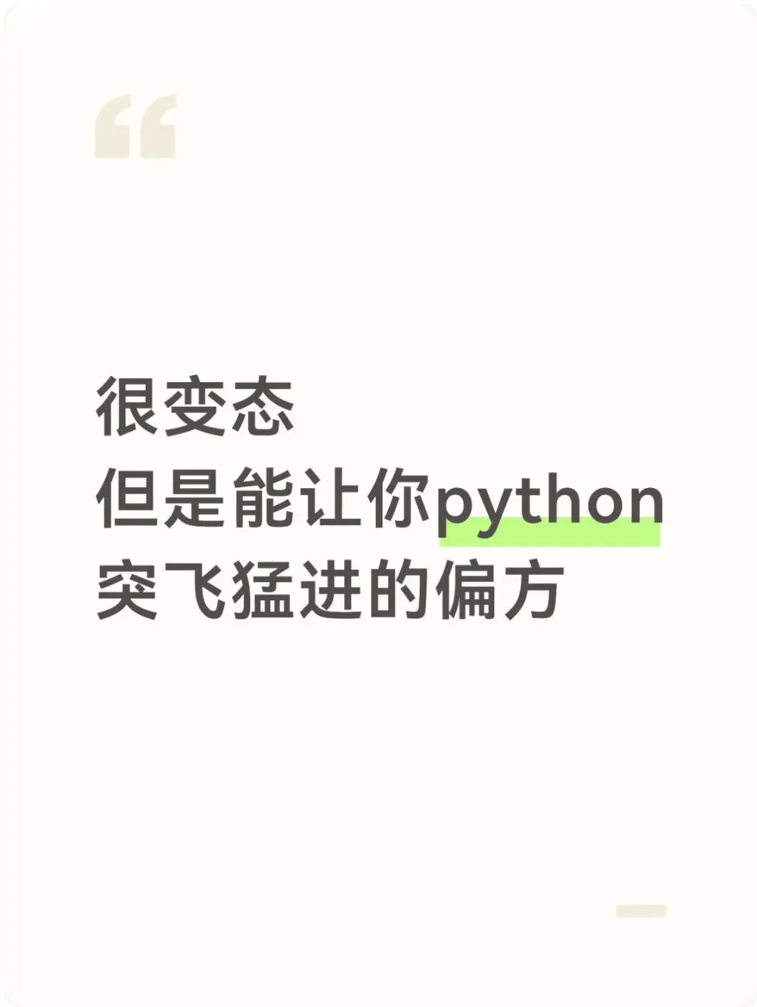 >很变态,但是能让python 突飞猛进的偏方!
