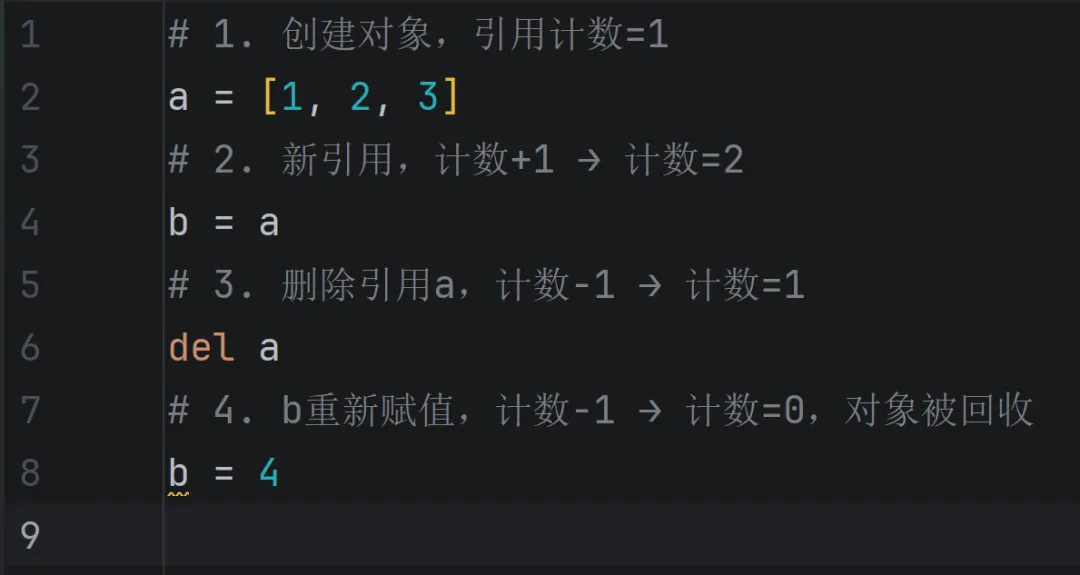 Python中,一切皆对象(int、str、list、函数等都是对象),每个对象都有一个“引用计数器”,用于记录当前有多少个变量引用该对象。