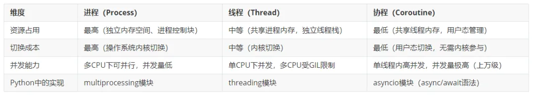 CPU密集型任务:用多进程(multiprocessing),每个进程有独立的Python解释器,不受GIL限制,可利用多核CPU。