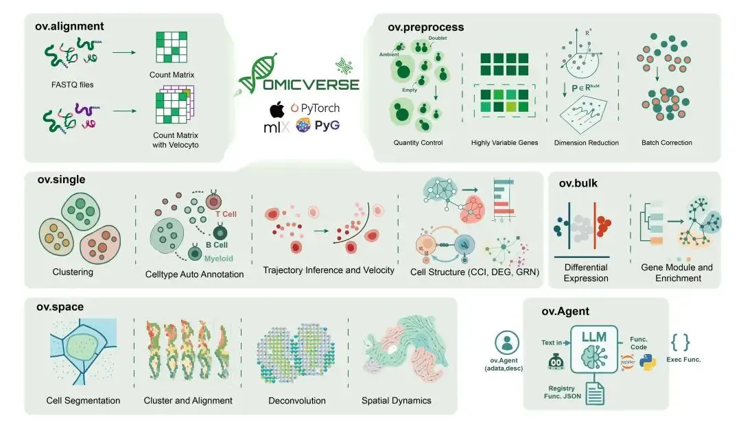 OmicVerse v2可以自动完成bulk RNA-seq、单细胞、空间转录组、可视化、模型分析与 AI 辅助工作流