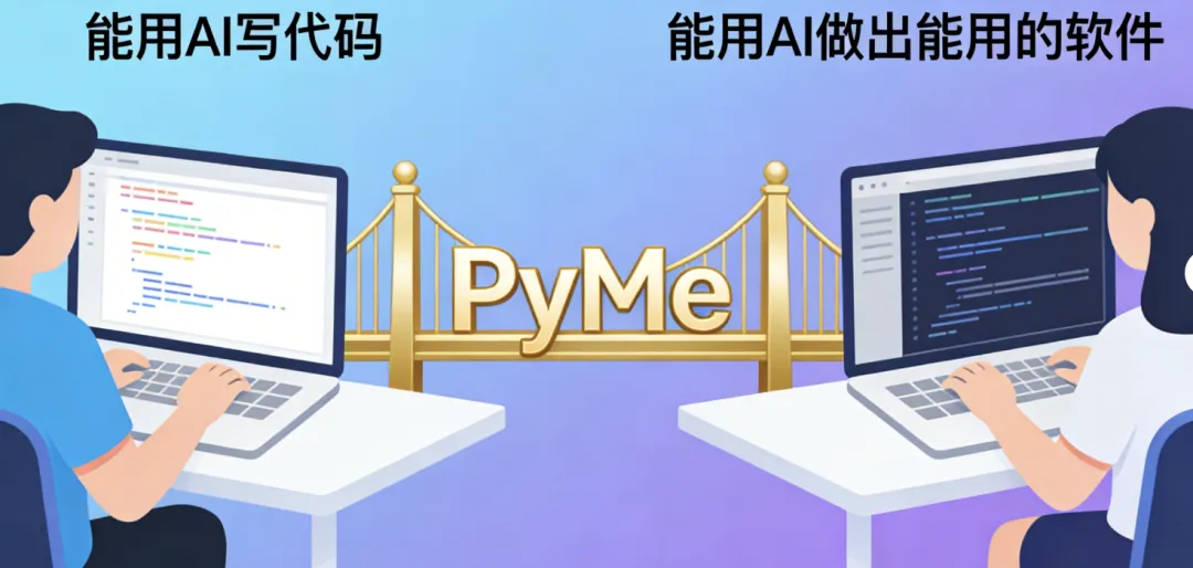 PyMe完美解决了这个问题。AI给你代码,PyMe帮你运行、调试、打包。你不需要懂代码是怎么写的,只需要会用AI提需求,剩下的交给PyMe。