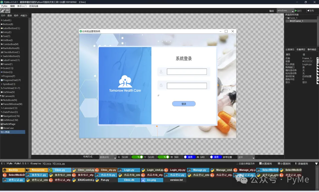 PyMe的可视化编辑器,让你“所见即所得”。你要加一个按钮,拖过去就行;要调大小,鼠标拉一下就行;要改颜色,点一下选色就行。