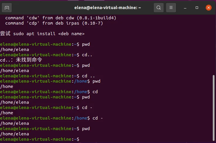 (2)pwd命令 功能:print work directory,显示当前工作目录的绝对路径 (3)mkdir命令 功能:make directory,创建新的文件夹test