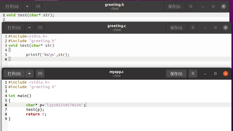 3.2.3 Linux系统下的编译工具Make 打开终端,用touch命令创建文件 依次编写三个文件中的内容: