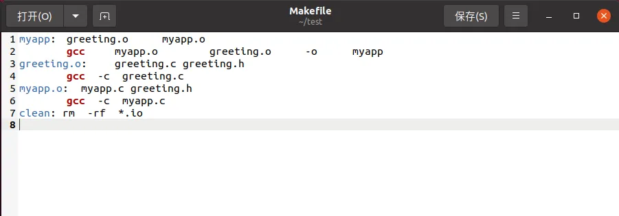 创建Makefile文件,用于编译一个包含两个源文件(myapp.c 和 greeting.c)的 C 程序,定义了生成可执行文件 myapp 的规则,并通过 clean 命令清理编译生成的中间文件。