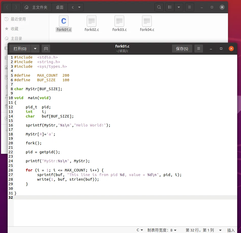 2.编写代码示例 (1)使用 fork 函数创建进程(fork01.c)