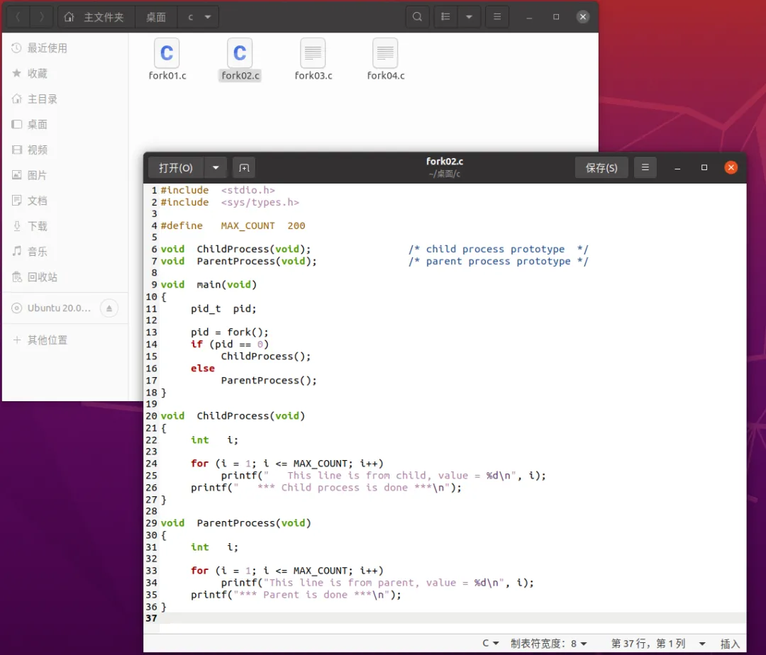 (2)分离父子进程工作内容(fork02.c)