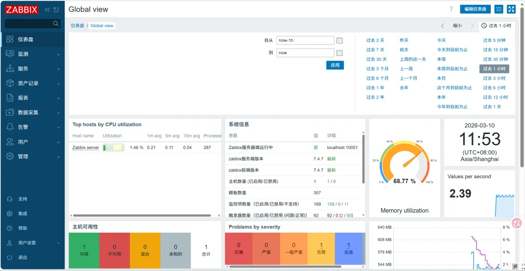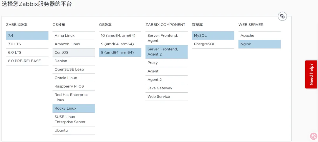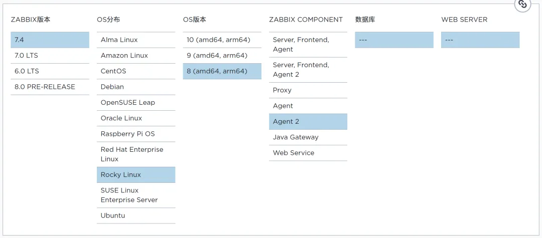 https://www.zabbix.com/cn按照官方向导,分别安装主控端zabbix server和被控端zabbix agent2数据库mysql(8.0以上)请自行提前安装zabbix 相比 prometheus,只需要一个agent而不是多个