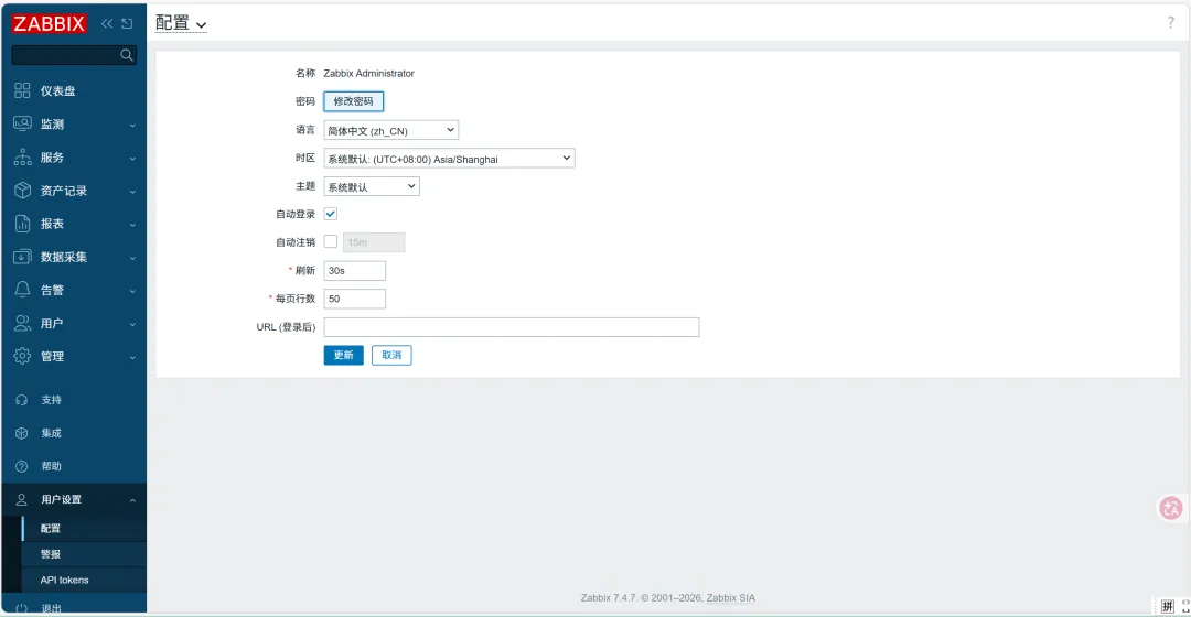 #如果web页面登录报错,刷新等一会再次登录即可!apache: http://host/zabbixnginx: http://host:portuser: Admin password: zabbix