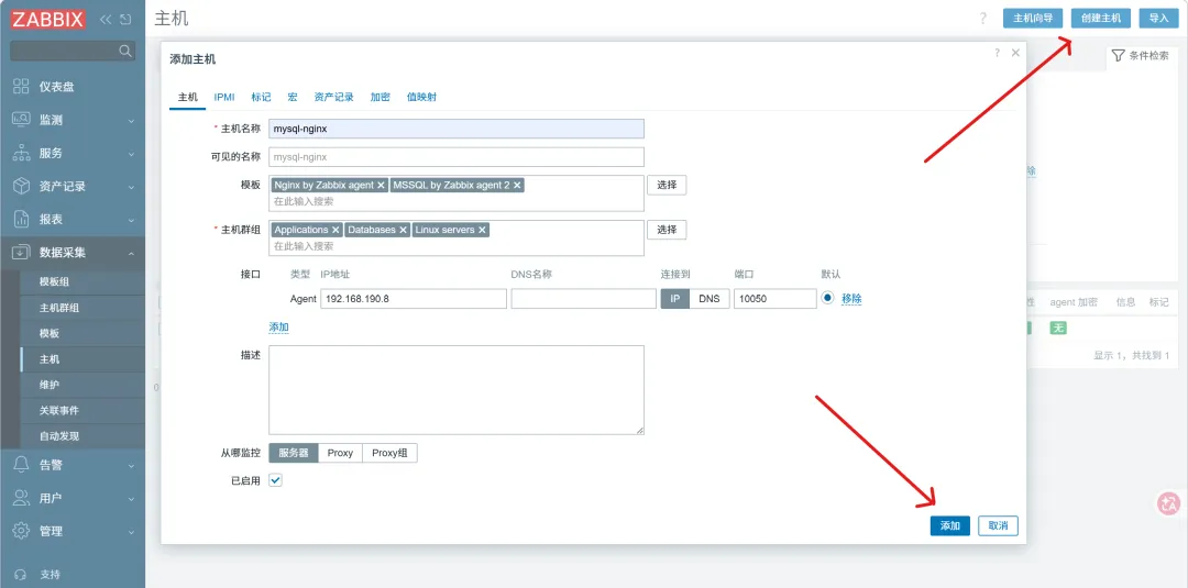 1、添加被监控主机