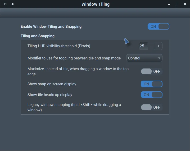 注意:在设置 > 窗口 > 窗口平铺 中可以微调吸附灵敏度、HUD 显示等。